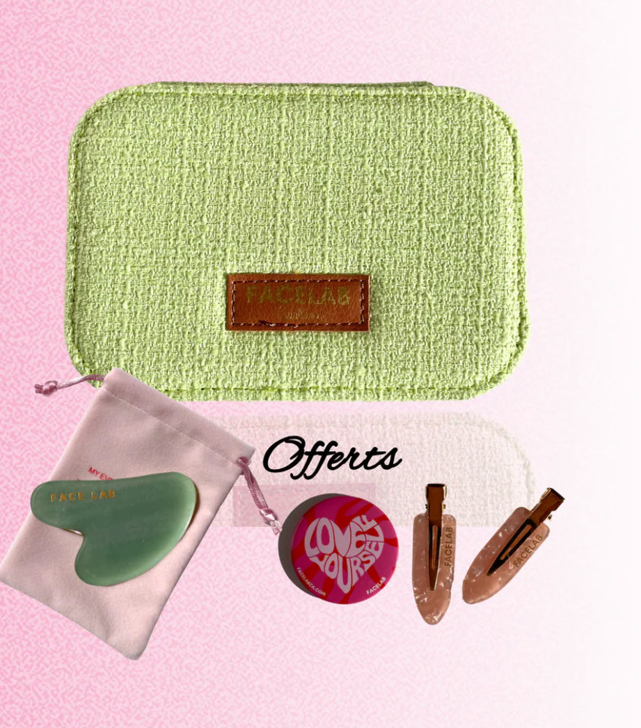 Découvrez le coffret FACELAB en tweed luxueux qui unit beauté et raffinement. Son plateau accueille vos bijoux et révèle un gua sha d’exception. Bénéficiez également d'un miroir et d'un duo de barrettes en cadeau, pour un rituel skincare élégant. Un coffret qui associe fonctionnalité et élégance pour votre bien-être.
