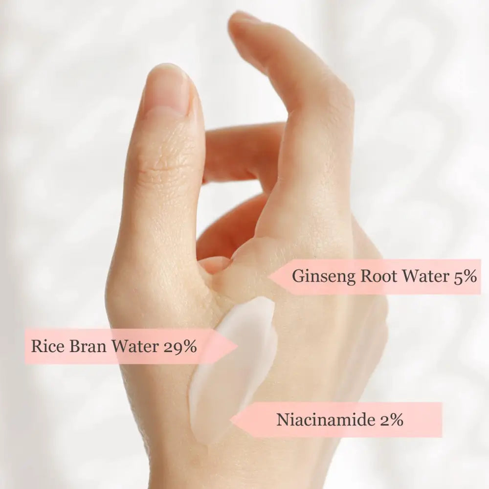 C'est une crème multifonctionnelle contenant de l'eau de son de riz, de l'eau de ginseng, du squalane et de la niacinamide pour la santé de la peau, l'hydratation et pour maintenir l'équilibre de l'huile et de l'humidité.