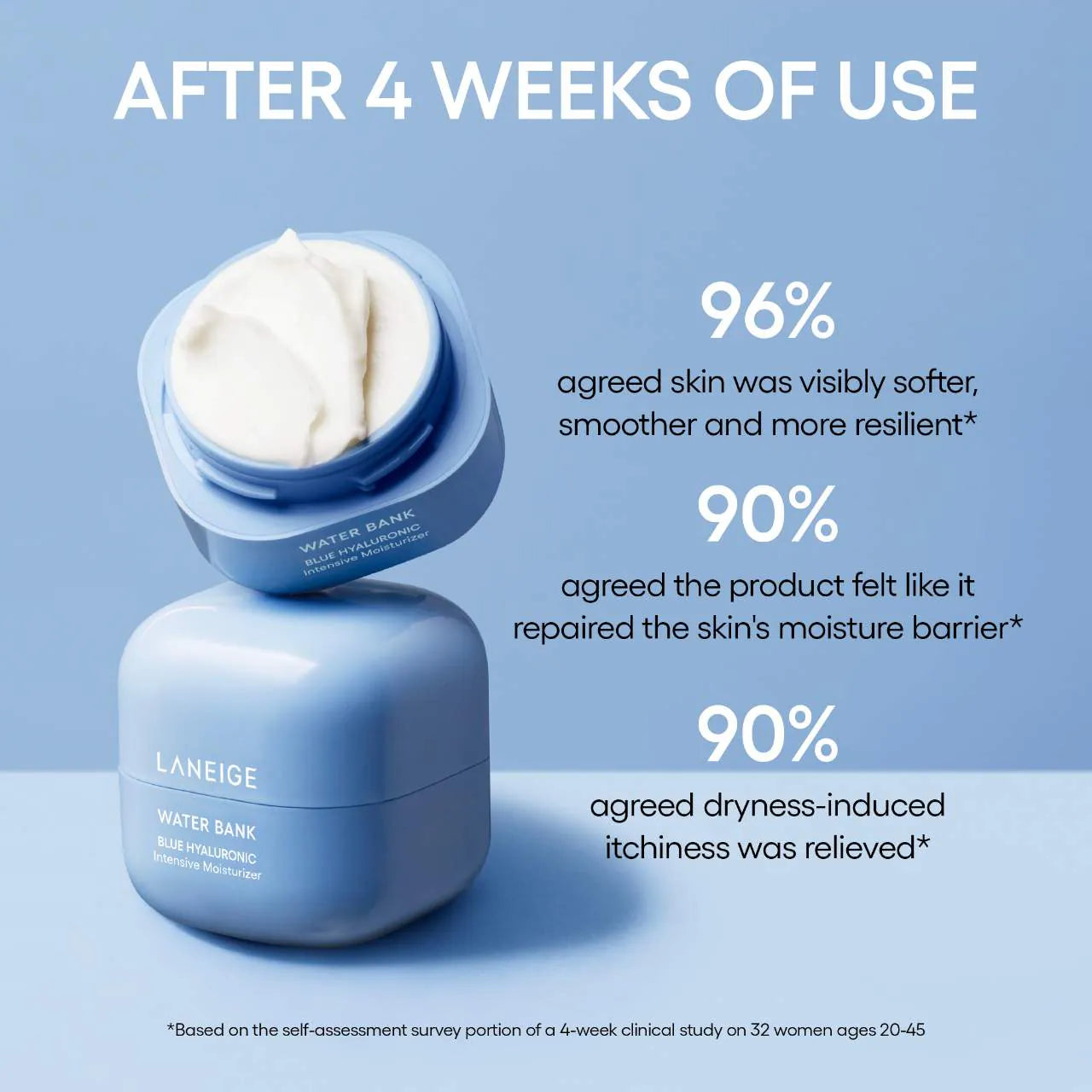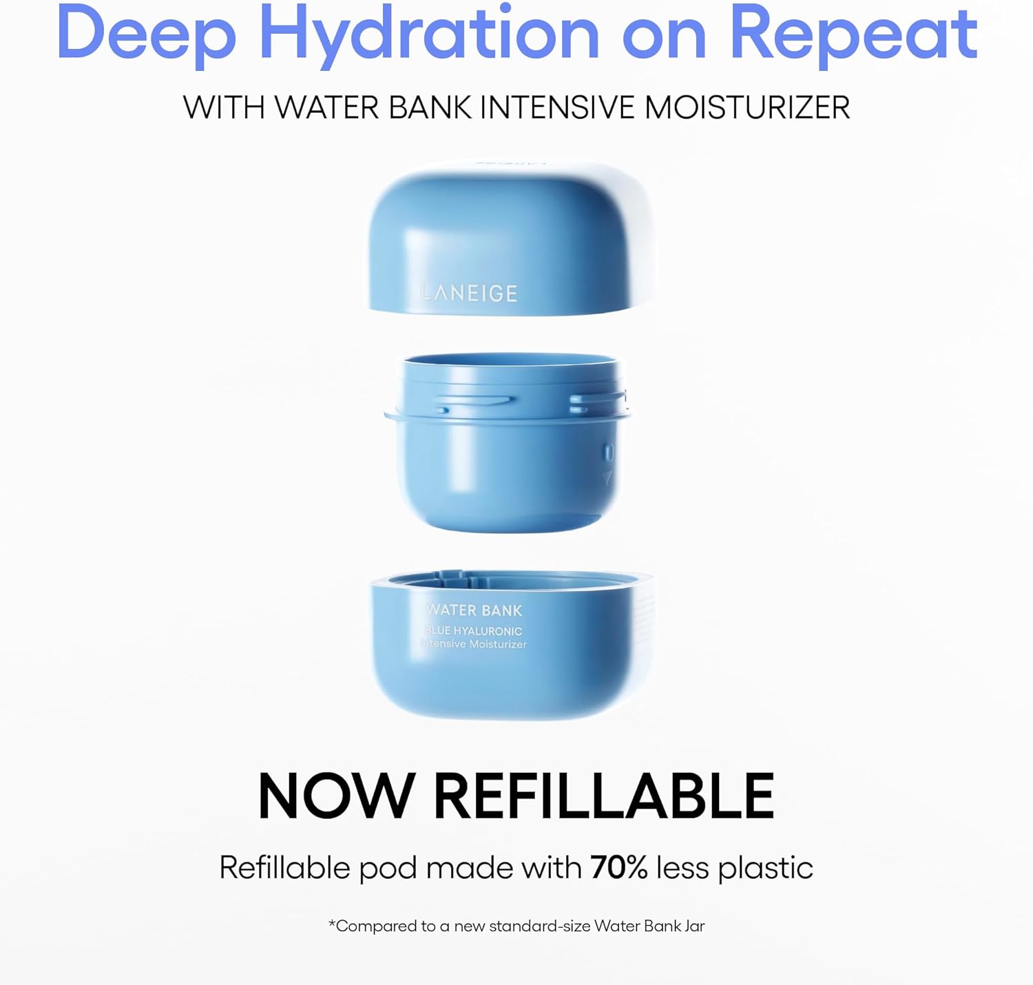 Découvrez la crème hydratante riche Water Bank Bleu Hyaluronic de LANEIGE. Sa formule en baume se fond instantanément dans votre peau, la laissant naturellement hydratée et lisse. Grâce à l'acide hyaluronique bleu aux molécules 2000 fois plus petites, obtenez une hydratation plus efficace pour une base solide avant votre maquillage.