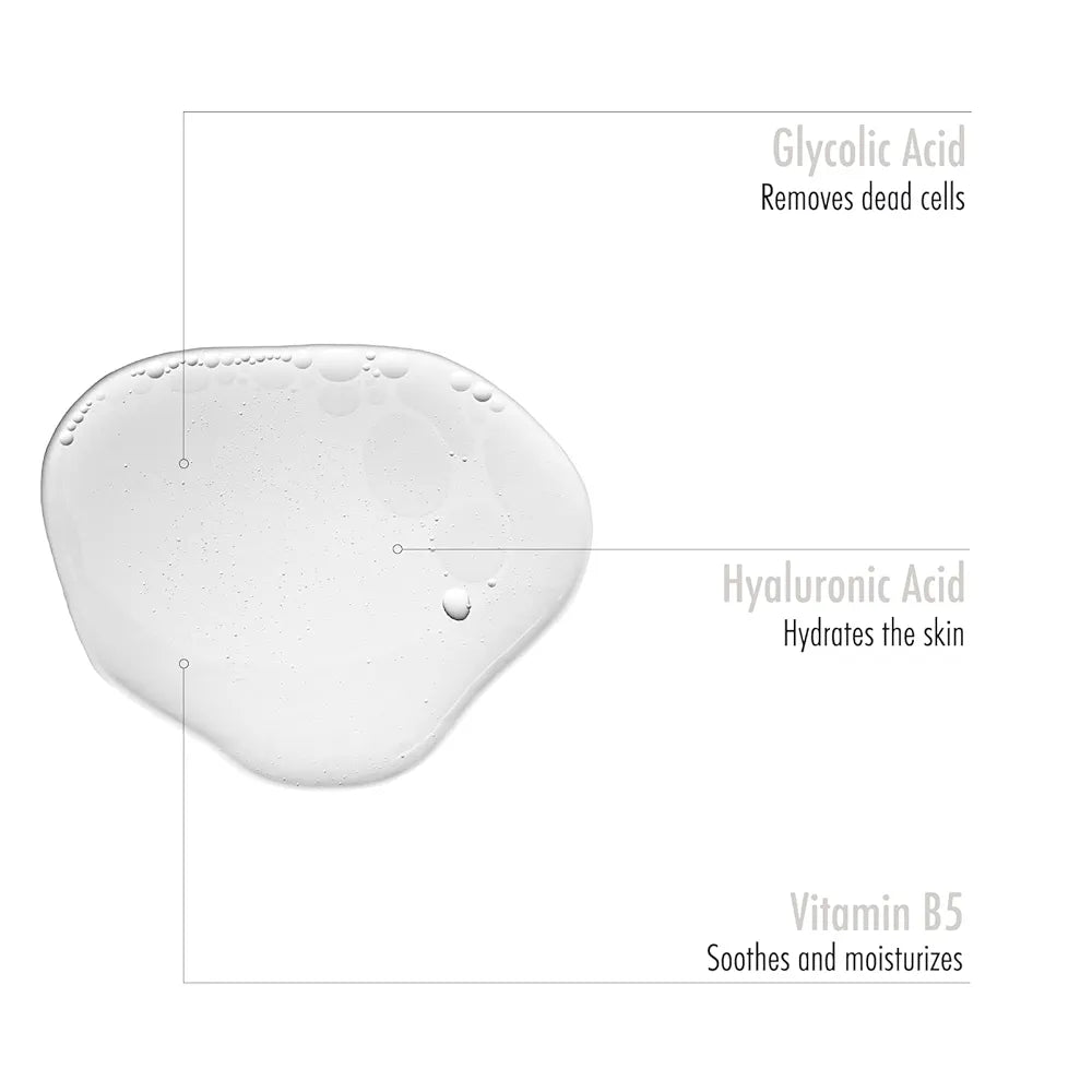 Pouvoir exfoliant : L'acide glycolique élimine en douceur la peau morte, favorisant un renouvellement cellulaire plus rapide pour une peau fraîche et éclatante.