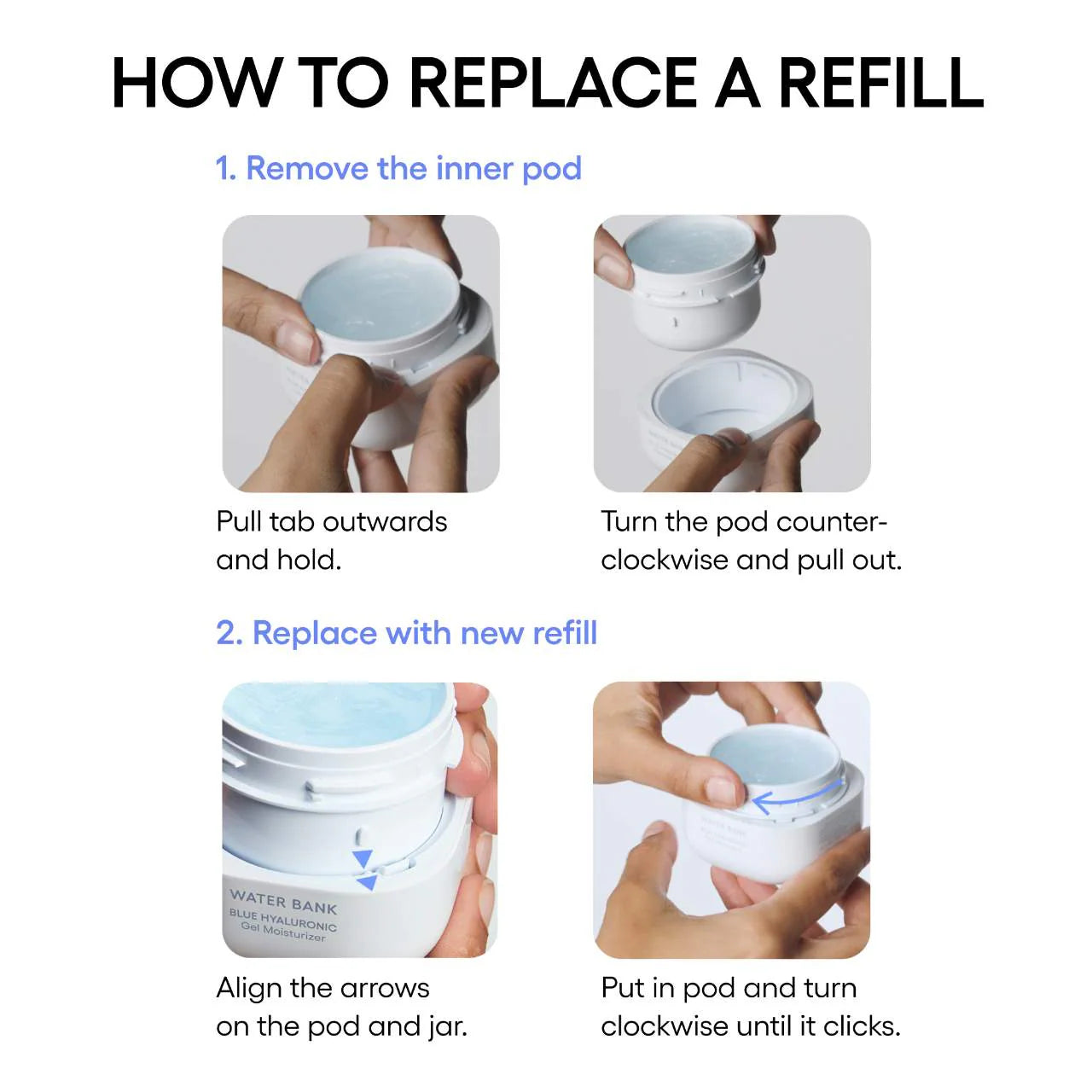 Découvrez le gel hydratant Water Bank Blue Hyaluronic de LANEIGE, spécialement conçu pour les peaux sensibles. Avec jusqu'à 48 heures d'hydratation apaisante, ce gel frais contient de l'acide hyaluronique bleu pour une hydratation efficace et durable, ainsi que de l'extrait de feuille de menthe pour rafraîchir et de l'extrait de levure de forêt pour apaiser la peau. Hypoallergénique et testé par des dermatologues, il ne contient que les ingrédients essentiels pour éliminer la sécheresse et raviver l'éclat.