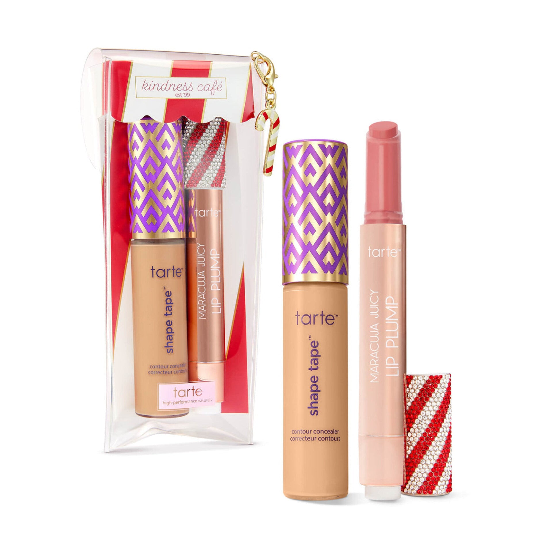 2 icônes, un cadeau légendaire ! Correcteur Shape Tape™ format standard + un baume à lèvres repulpant Maracuja Juicy Lip Plump en édition limitée, format standard, avec un bouchon orné de strass.