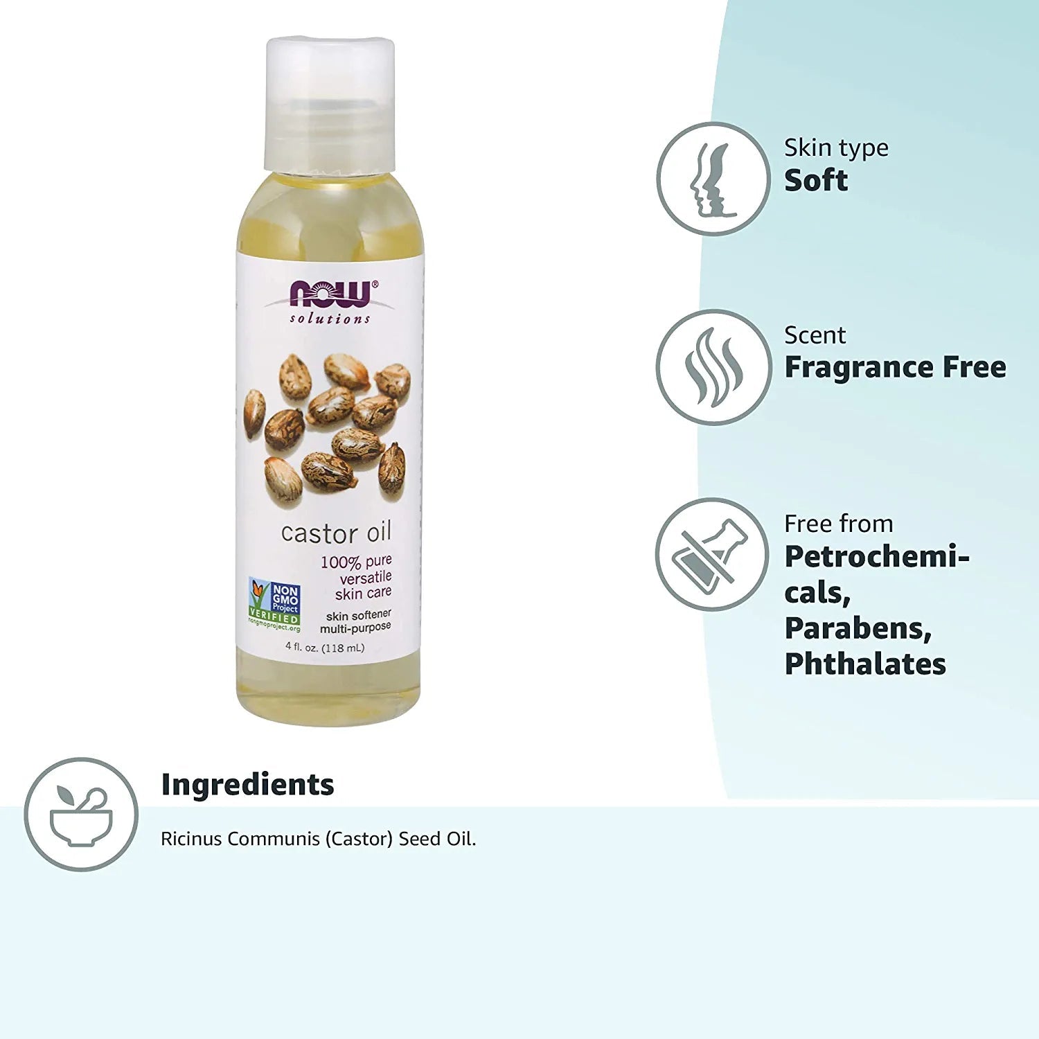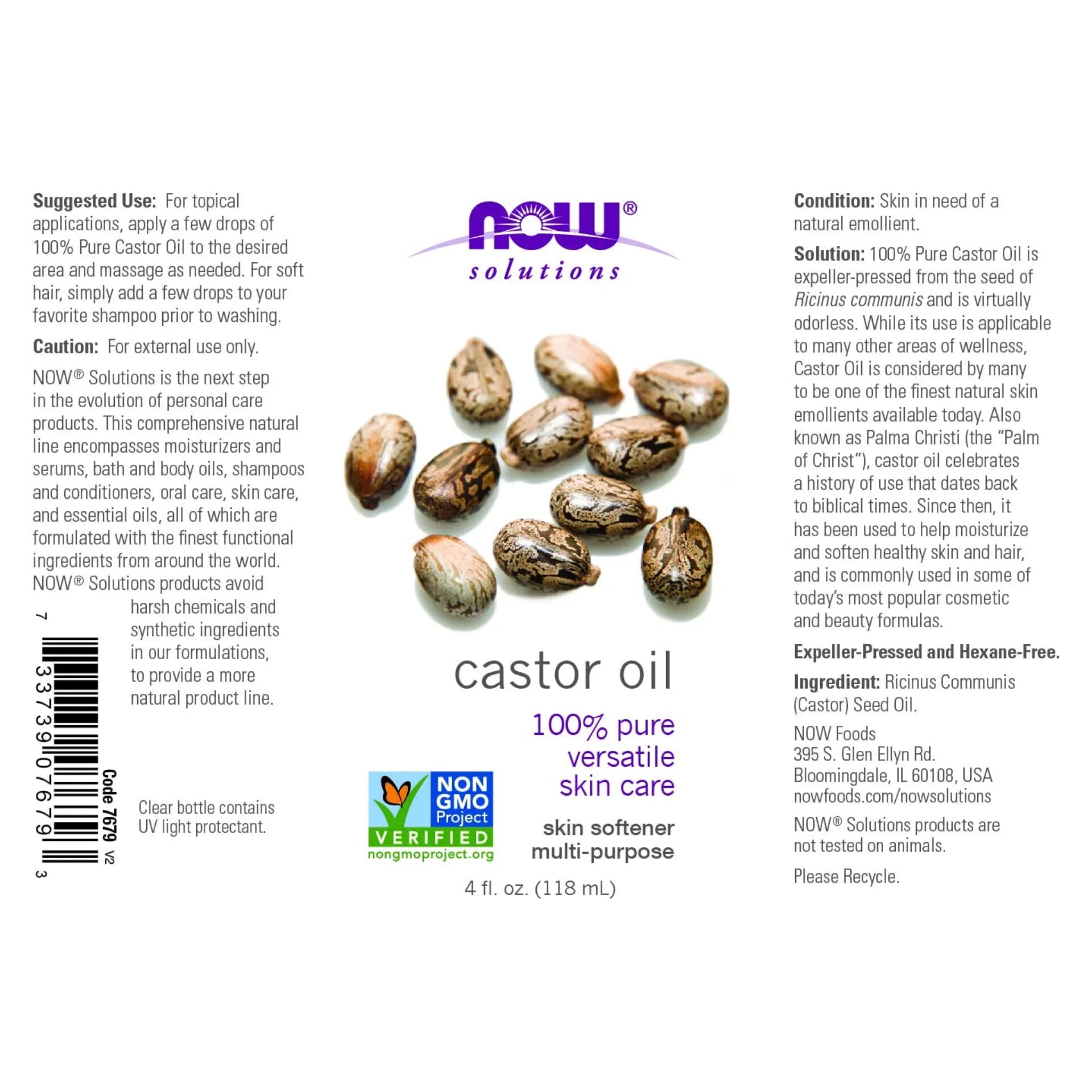 NOW SOLUTIONS - Huile de Ricin 100% Pure et Naturelle Castor Oil - 118ml