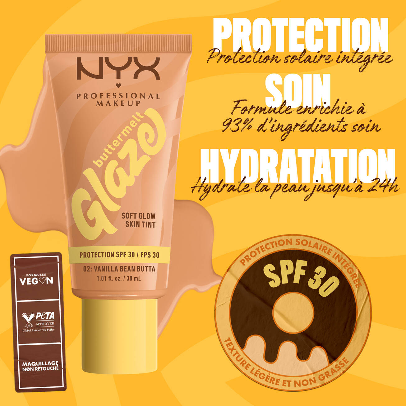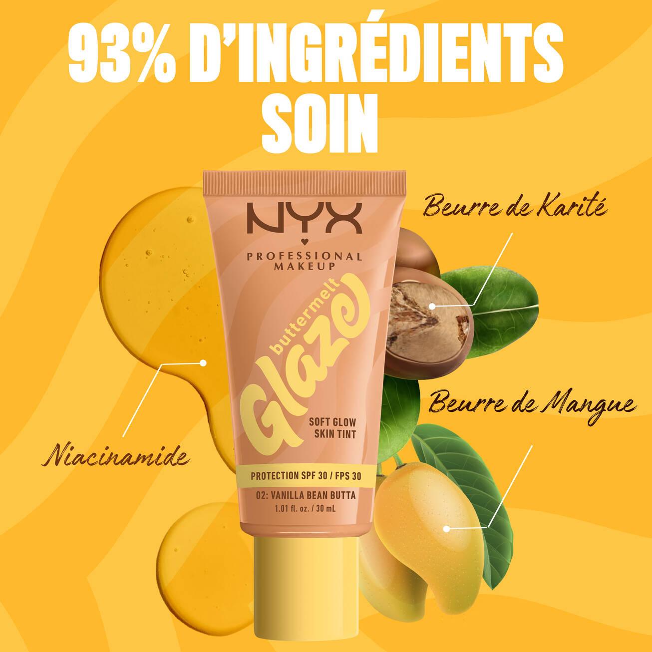 NYX - FOND DE TEINT ÉCLAT BUTTERMELT GLAZE réf 02 Vanilla Bean Butta