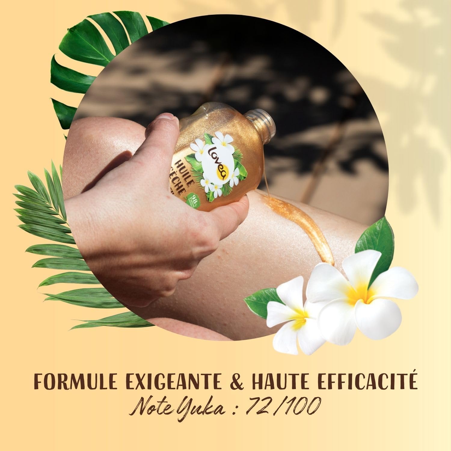 Lovea - Huile Sèche Scintillante Monoï de Tahiti - 150ml est la touche parfaite pour tes soirées d'été. Sa formule à 98% naturelle contient du Monoï de Tahiti d'origine responsable et des nacres naturelles. Nourrissante et illuminante, elle s'applique sur la peau et les cheveux. Bien agiter avant utilisation puis appliquer sur le corps (décolleté, épaules, jambes, …) et sur les longueurs des cheveux.