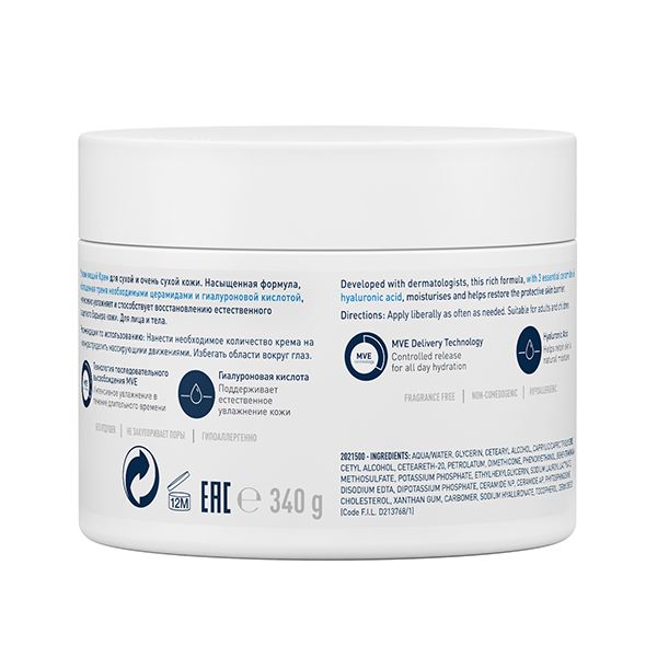 Développé avec des dermatologues, le Baume Hydratant CeraVe nourrit et hydrate la peau sèche et très sèche tout en restaurant sa barrière protectrice. Grâce à sa texture crème riche et non grasse, enrichie en 3 céramides essentiels et acide hyaluronique, il procure une hydratation continue et convient aux peaux sensibles.