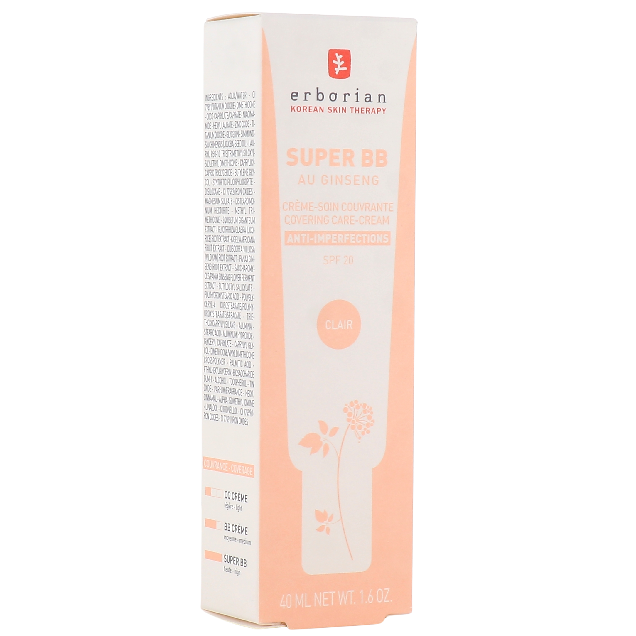 ERBORIAN - Super BB - BB crème couvrante au Ginseng anti-imperfections SPF20 - réf Clair - 40ml