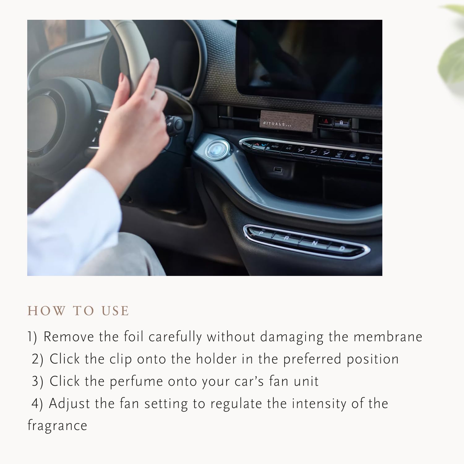 Profitez d'un trajet parfumé avec notre air freshener pour voiture RITUALS. Avec un mélange de thé vert revigorant, de figue sucrée et d'agrumes acidulés, chaque trajet devient une expérience de luxe. Transformez votre voiture en spa mobile et profitez de chaque instant du voyage.