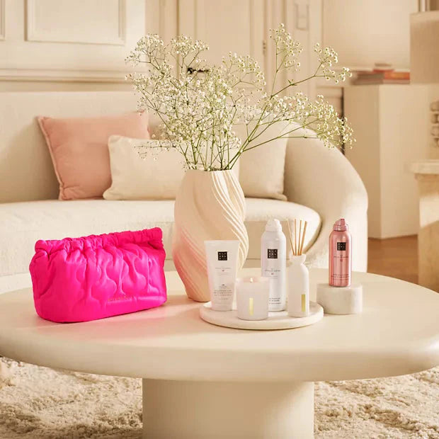Le coffret L RITUALS - The Ritual Of Sakura comprend une mousse de douche de 200 ml, une crème pour le corps de 150 ml, une mousse hydratante pour le corps de 150 ml, une bougie parfumée de 140 g et des mini bâtonnets parfumés de 70 ml. Ce cadeau offre une expérience sensorielle complète, favorisant la relaxation et le bien-être au quotidien.